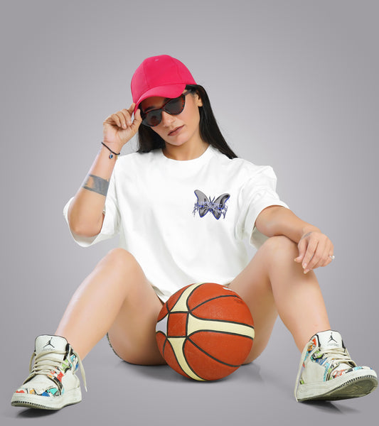 White Butterfly Oversized Tee