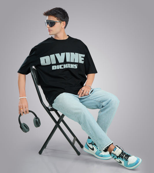 Divine dickens Black Oversized Unisex Reflective Tee
